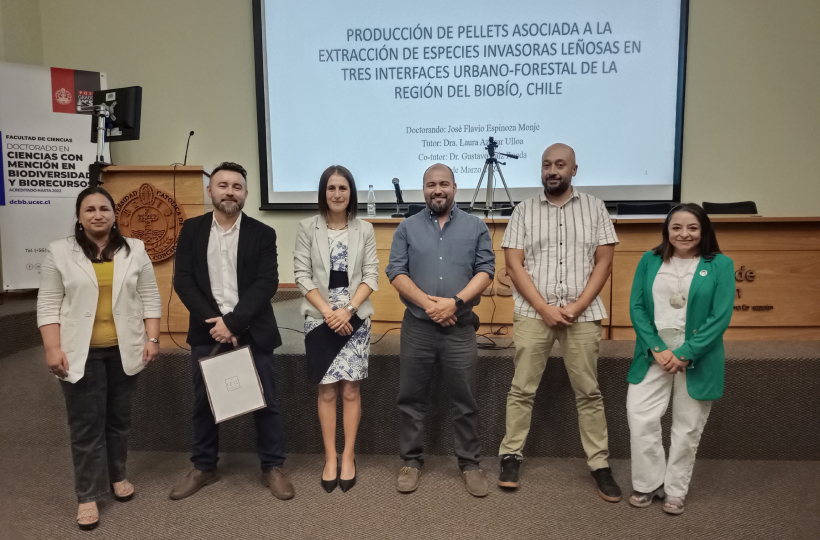 “Producción de pellets asociada a la extracción de especies invasoras leñosas en tres interfaces urbano-forestal de la Región del Biobío, Chile”, es el nombre de la tesis de Flavio Espinoza-Monje. La directora de tesis es la Dra. Laura Azócar y el co-director el Dr. Gustavo Saíz.